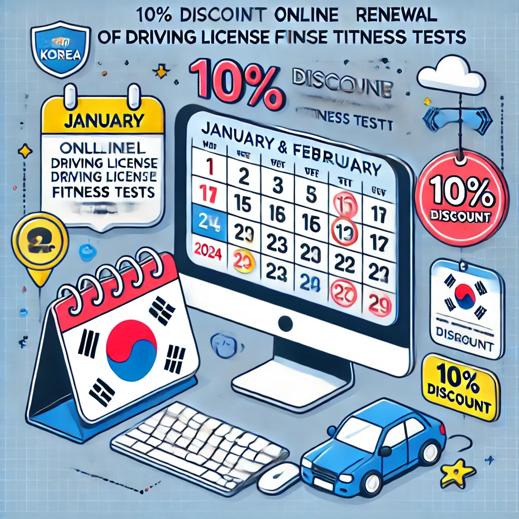 2024년 1월과 2월 동안 운전면허 온라인 적성검사(갱신) 발급 수수료가 10% 할인됩니다.