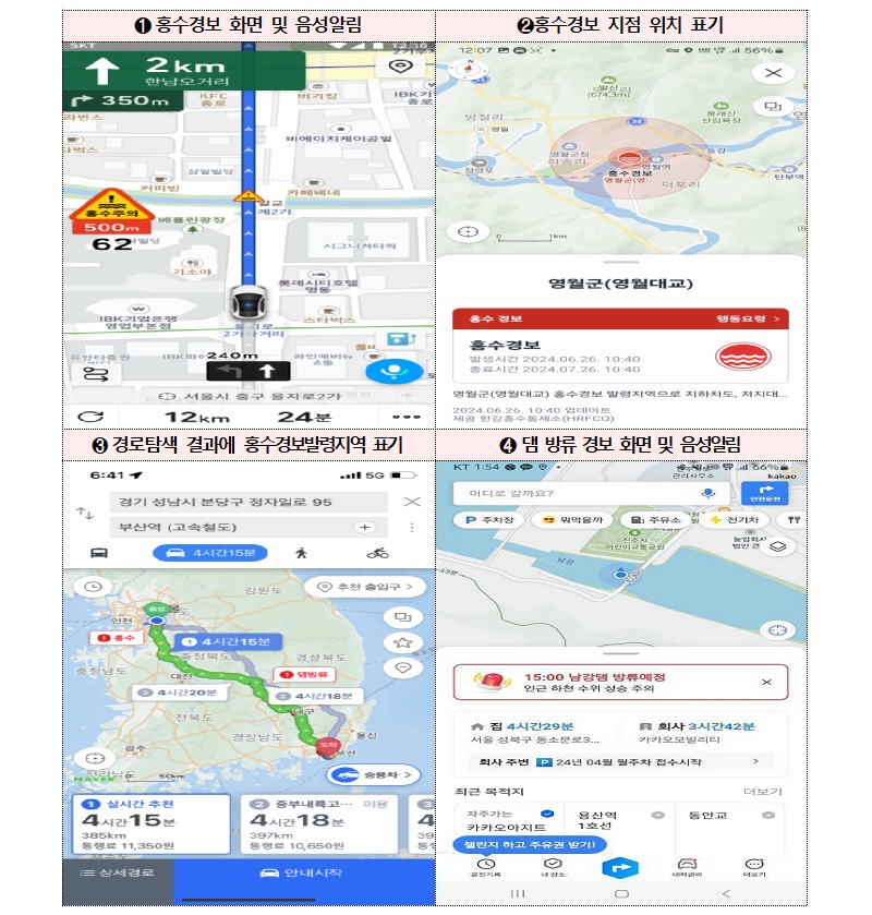 이 기능을 통해 운전자는 실시간으로 홍수 위험을 파악하고 안전하게 운전할 수 있습니다.